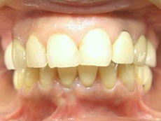 | 右で噛める状態です。下の1・1はかかりつけの先生にオールセラミックで治してもらいます。とてもきれいに仕上がります。この段階ではかみ合わせは少し高めです。顎の不調をとるためです。 |