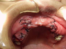 | 下顎右下4左下3に埋入されました。現時点では既存の義歯を使用します。 |