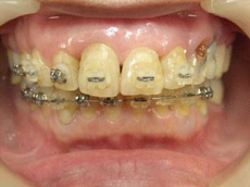 | | 上顎の前歯部2〜2はすでに後方に直立しつつあります。