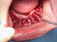 埋入中の状態です。前歯部には骨の増生が必要です。
